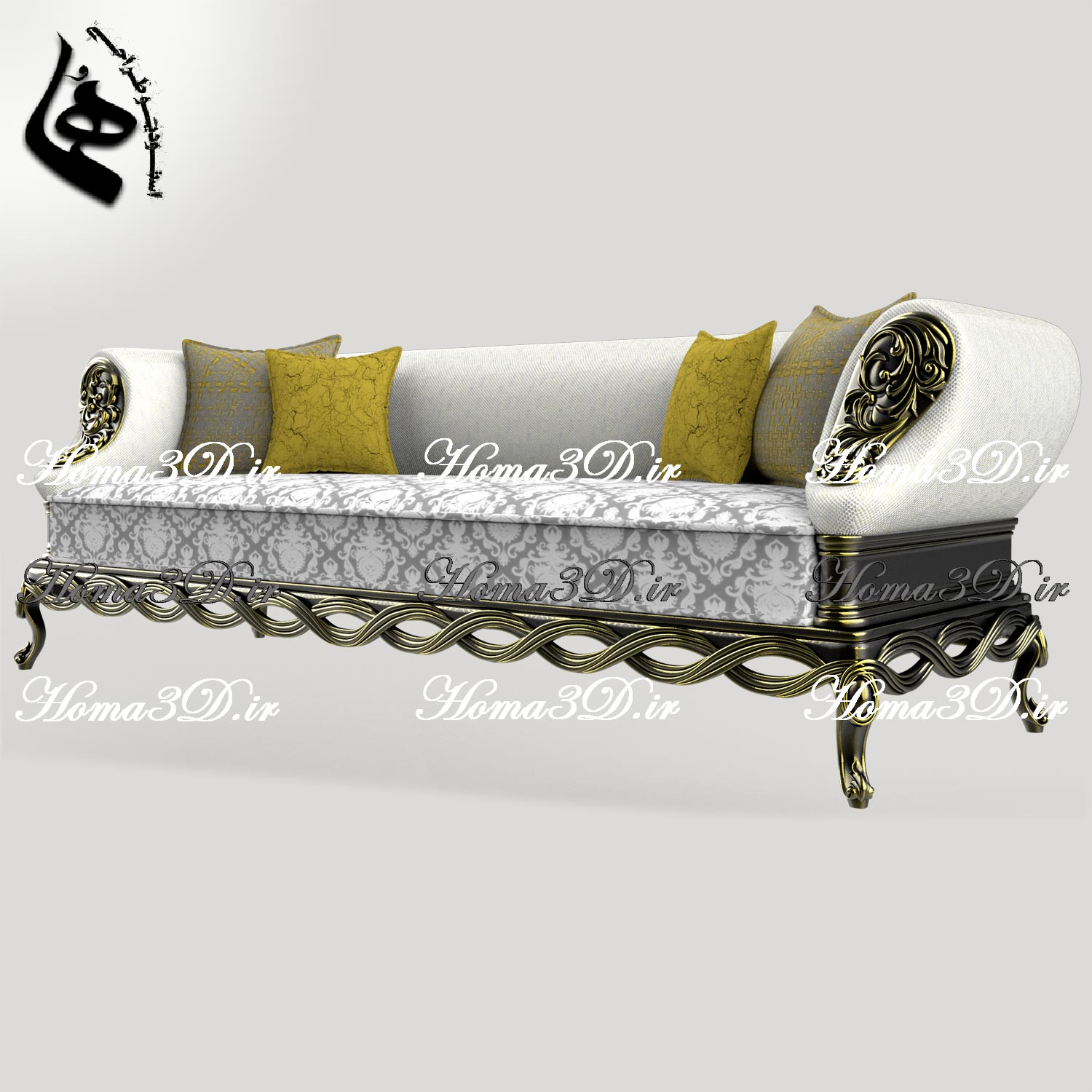فایل طراحی سه‌بعدی کاناپه منبتی لوکس ایتالیایی مناسب اجرای سی‌ان‌سی و برش لیزر با فرمت STL، DXF، EPS. ساخت استودیو طراحی هما، قابل دانلود فوری.