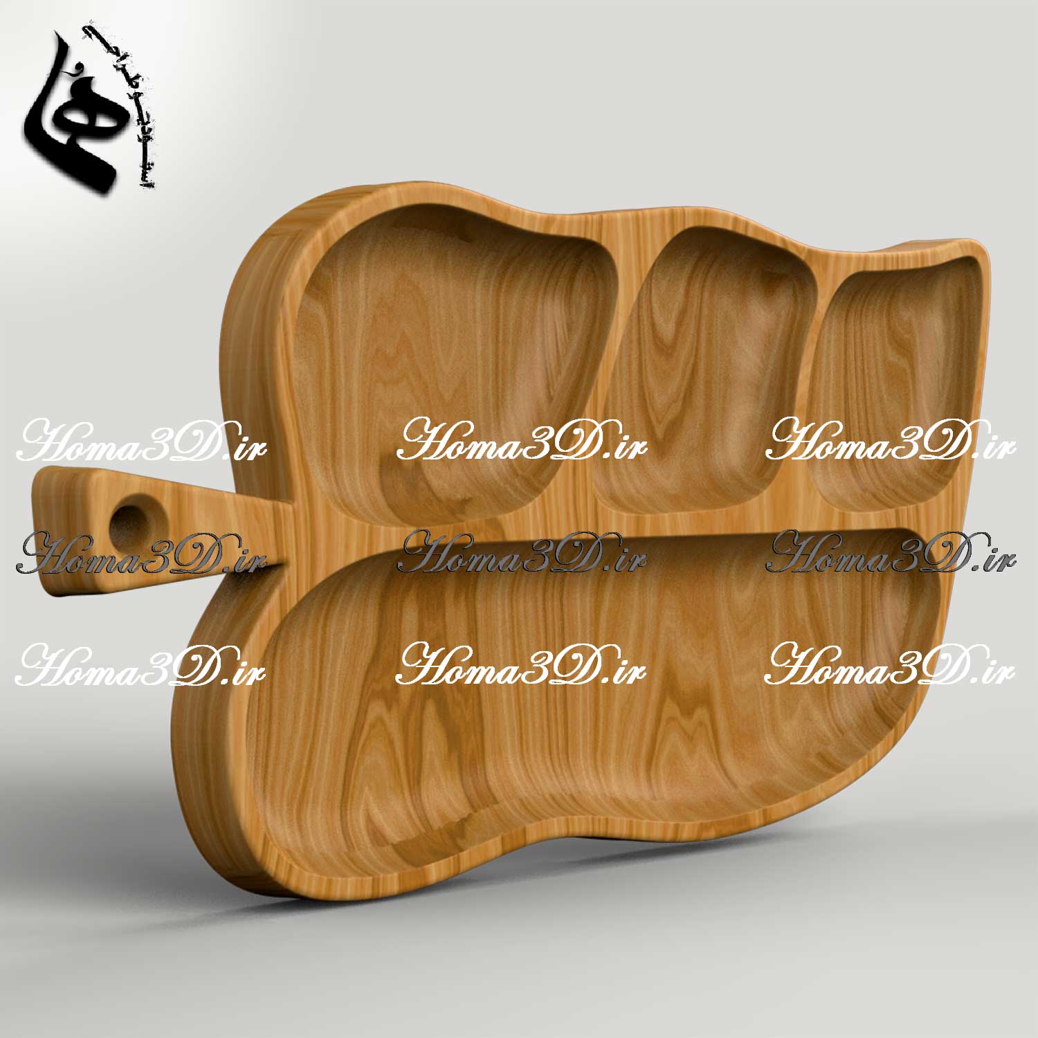 تمامی مدلهای ظروف چوبی از جمله این اردوخوری برگمانند سهبعدی توسط تیم حرفهای ما در