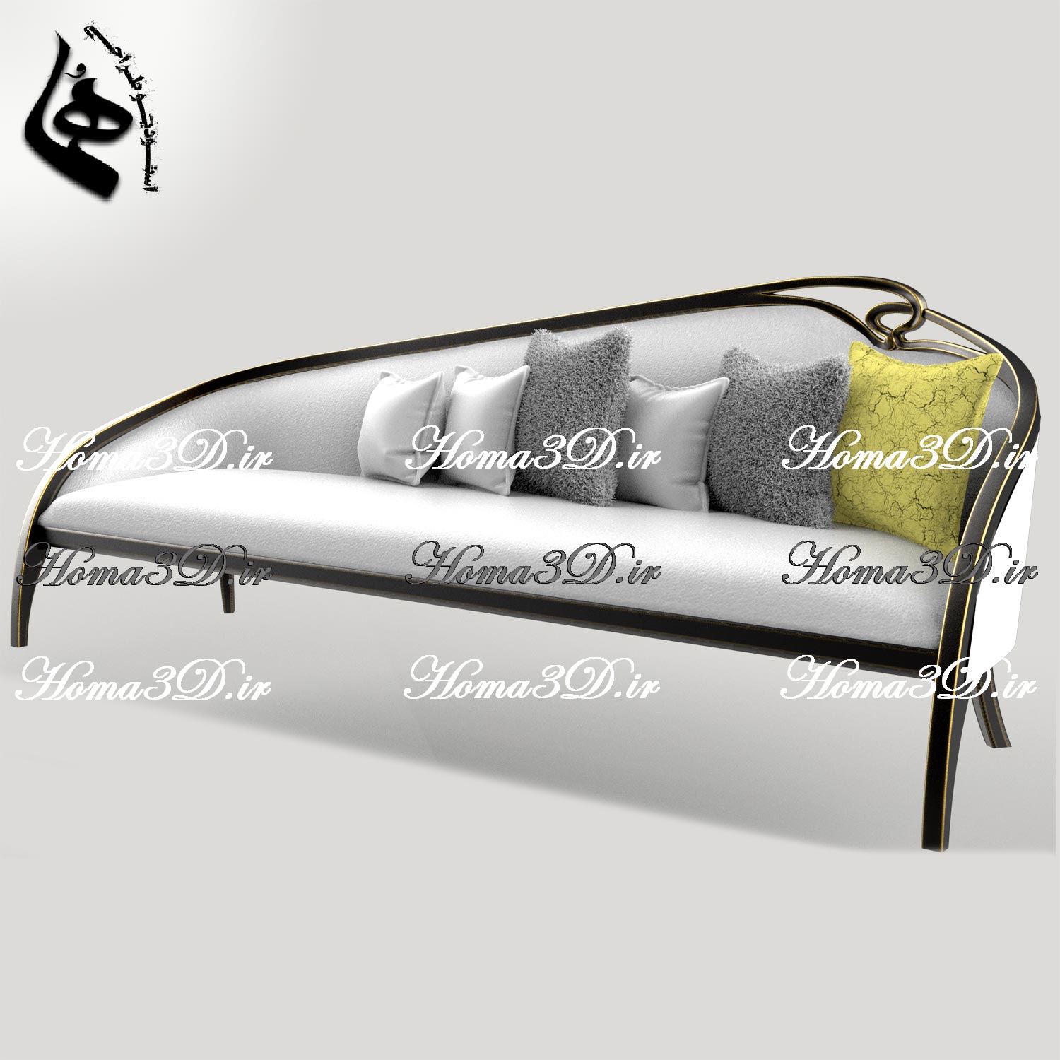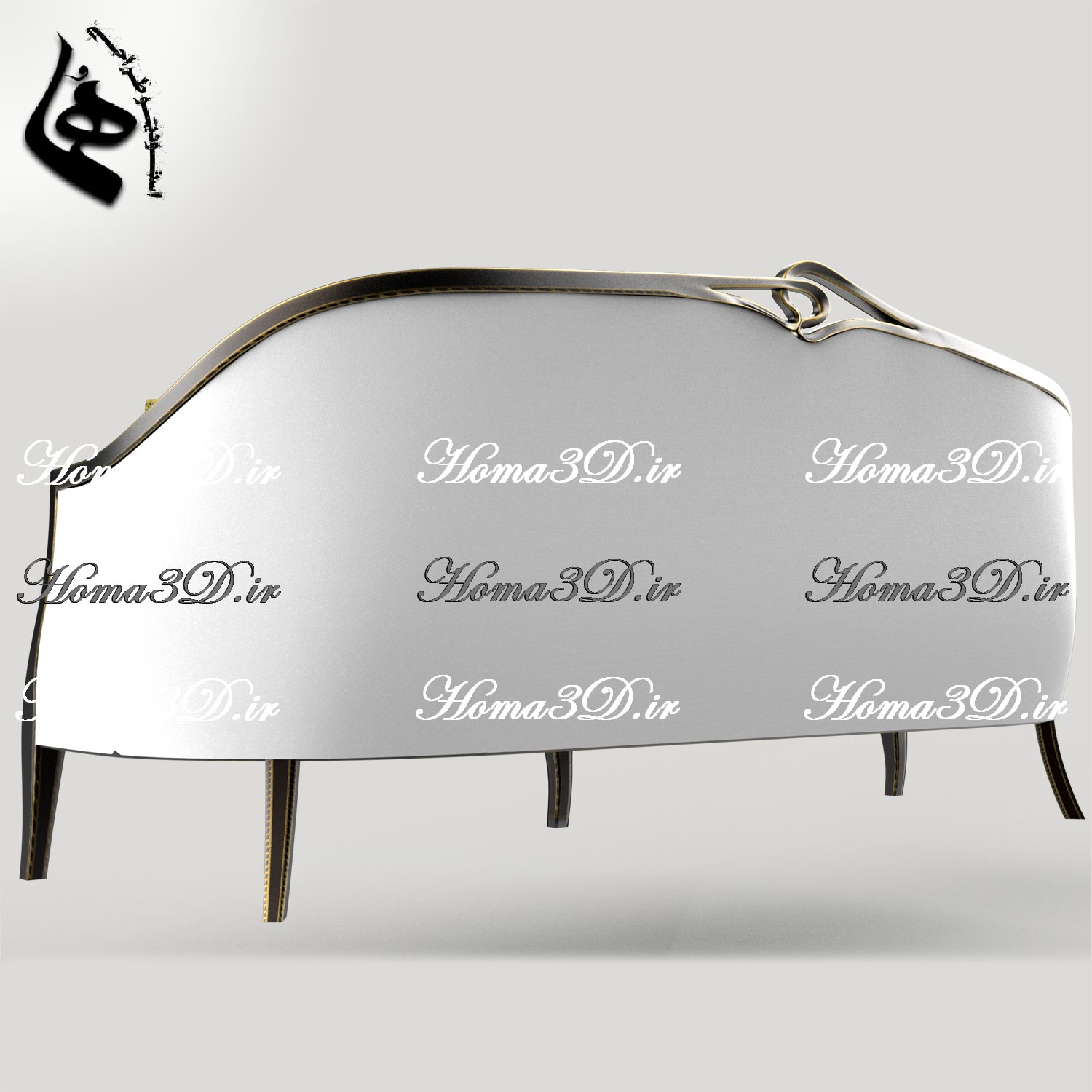 🪑 فایل طراحی 3بعدی مبلمان لوکس با فریم زیبا و انحنای خاص از سبک نئوکلاسیک